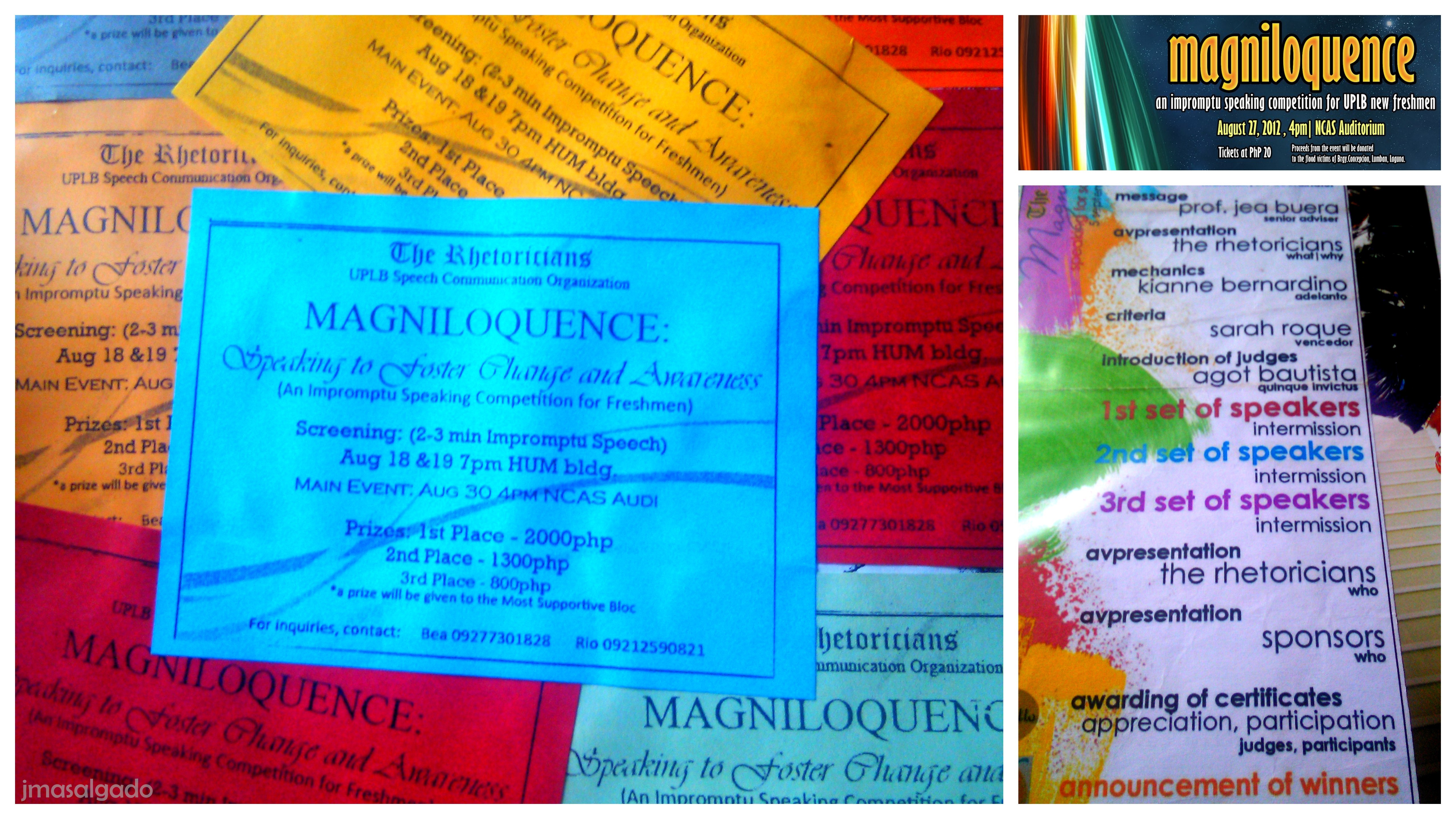 I was a part of three Magniloquence competitions. A yearly event which gives an opportunity for New Freshmen to be heard and take part in the university affairs. I was even a participant in the 2009 Magniloquence when I was still an NF, but I didn’t win. 😉